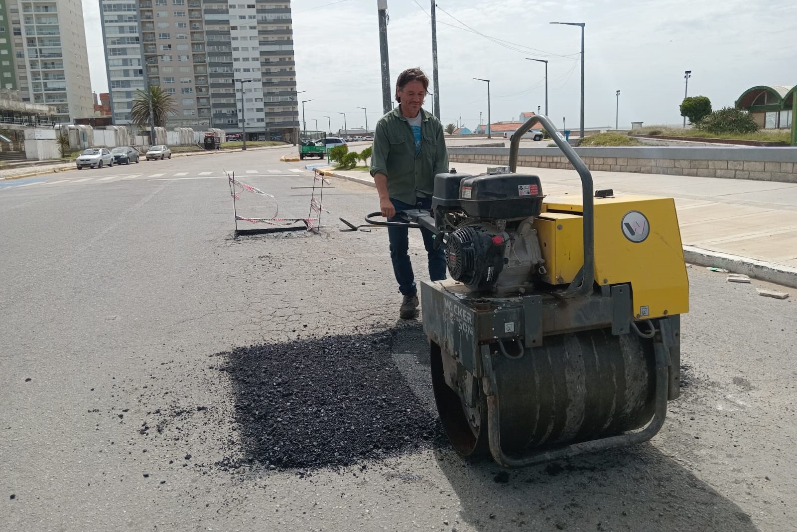 Unos metros más atrás, las cuadrillas de pavimentación se encuentran terminando con un bacheo de la carpeta en caliente sobre la Avenida 2, en distintos sectores que estaban afectados por el gran tránsito vehicular, desde calle 91 hasta la rotonda mencionada.