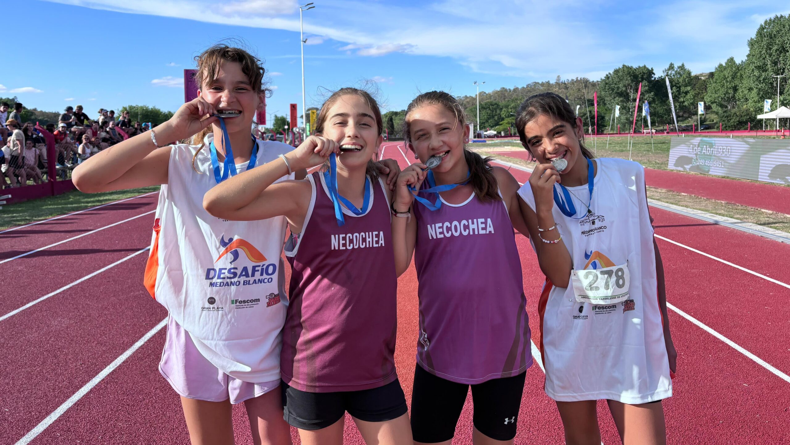 En una jornada histórica para el atletismo de la región, con la inauguración de la pista sintética de la ciudad serrana, el evento más convocante para el semillero atlético de la provincia contó con una delegación necochense acompañada por Sofía Enciso y Santiago Cabrera junto al coordinador Mauro Cabrera.