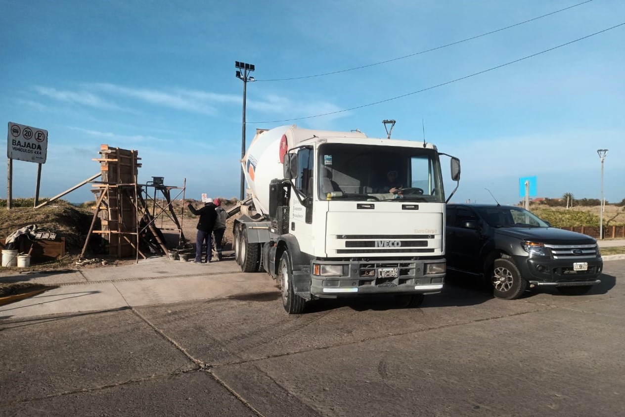 Continuando con las mejoras del frente costero, aun fuera de la temporada estival, la Secretaría de Planeamiento, Obras y Servicios Públicos informó que esta mañana comenzó el proceso de hormigonado de las columnas que darán vida al nuevo pórtico de señalización en la bajada de vehículos 4×4 ubicada en Avenida y calle 71.